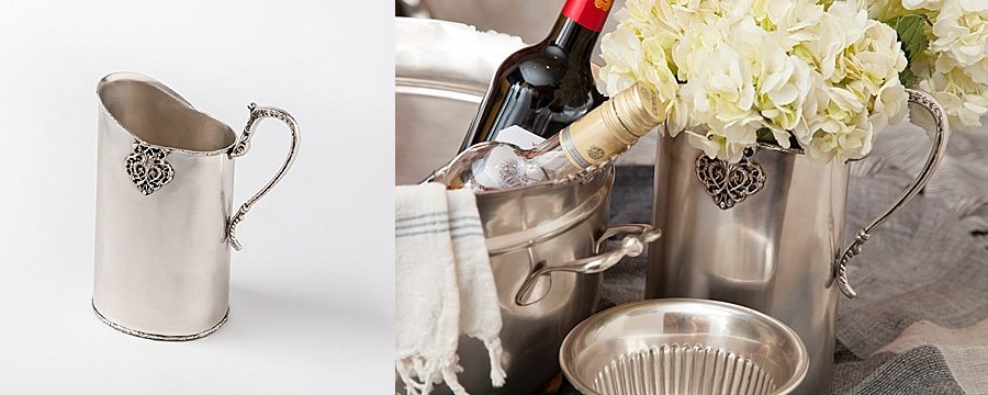 Our St. Martin Pitcher has such elegant detail throughout the center, bottom, and handle that it is perfect for any vintage romantic style event. Have your waiting staff refilling water glasses with this beautiful piece that your guests will find breathtaking.